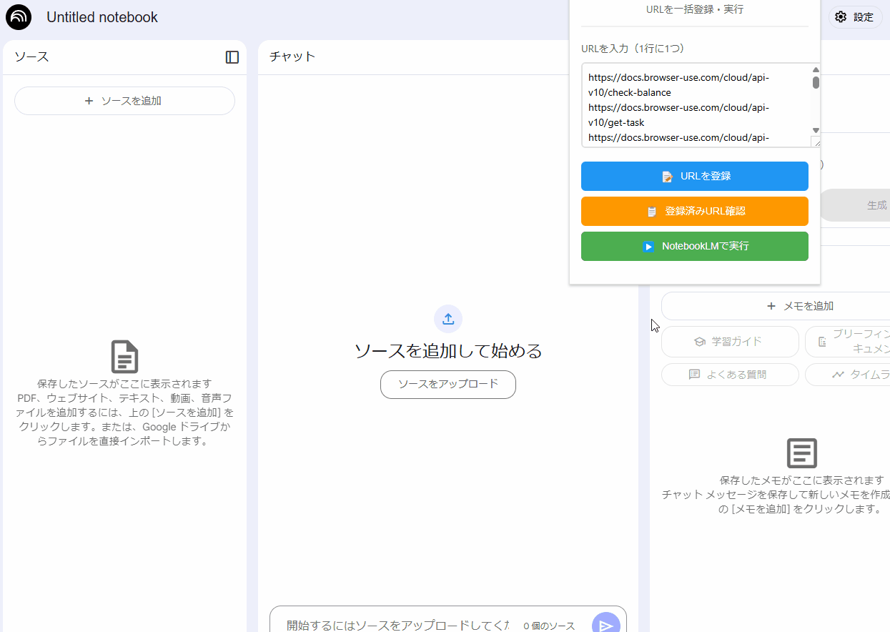 NotebookLMは素晴らしいツールですが、大きな欠点があります。それはURLを一つずつ手動で登録する必要があるということ。