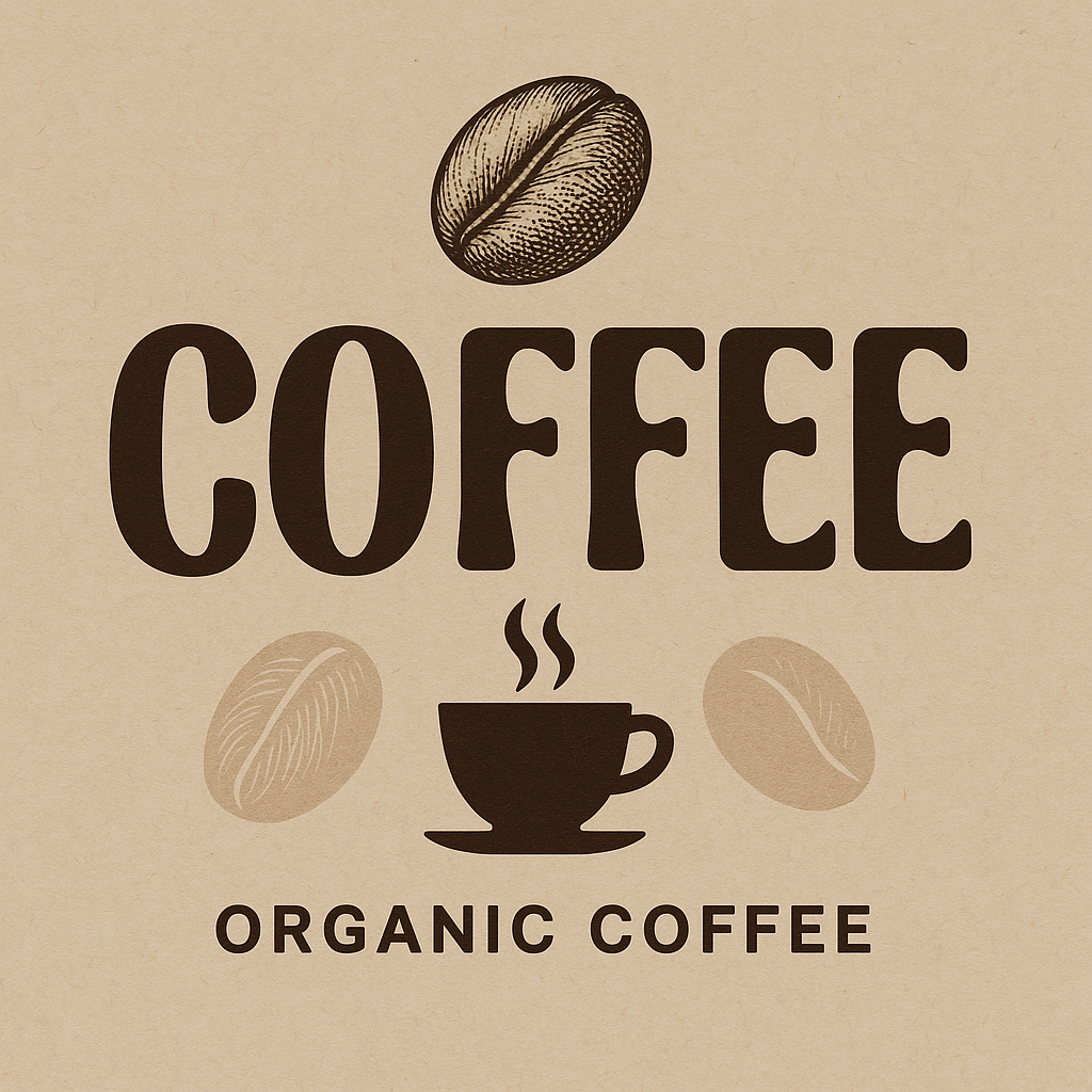 オーガニックコーヒー専門店のロゴデザイン。『COFFEE』という文字を、コーヒー豆の形をモチーフにした、独特なフォントで表現。文字の色は、深みのある茶色。背景には、コーヒー豆のイラストと、コーヒーカップのシルエットを配置。全体的に、シンプルで洗練された、高級感のあるデザインにする。出力画像:
